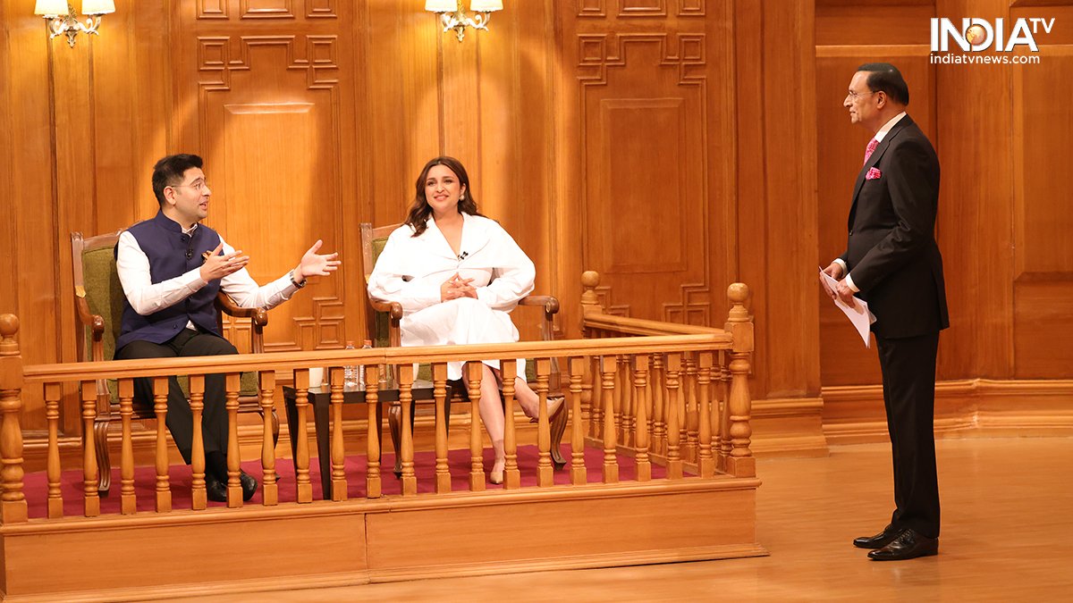 छवि स्रोत: इंडिया टीवी आप की अदालत में आम आदमी पार्टी के राज्यसभा सांसद राघव चड्ढा और फिल्म स्टार परिणीति चोपड़ा