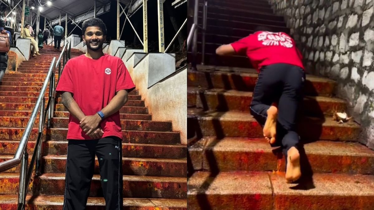 भारतीय ऑलराउंडर नीतीश कुमार रेड्डी ने ऑस्ट्रेलिया में बॉर्डर-गावस्कर ट्रॉफी के बाद आंध्र में पवित्र तिरूपति मंदिर का दौरा किया। रेड्डी ने इंस्टाग्राम पर अपनी यात्रा की तस्वीरें और वीडियो साझा किए। एक वीडियो में रेड्डी को घुटनों के बल सीढ़ियां चढ़ते हुए आशीर्वाद मांगते देखा जा सकता है।