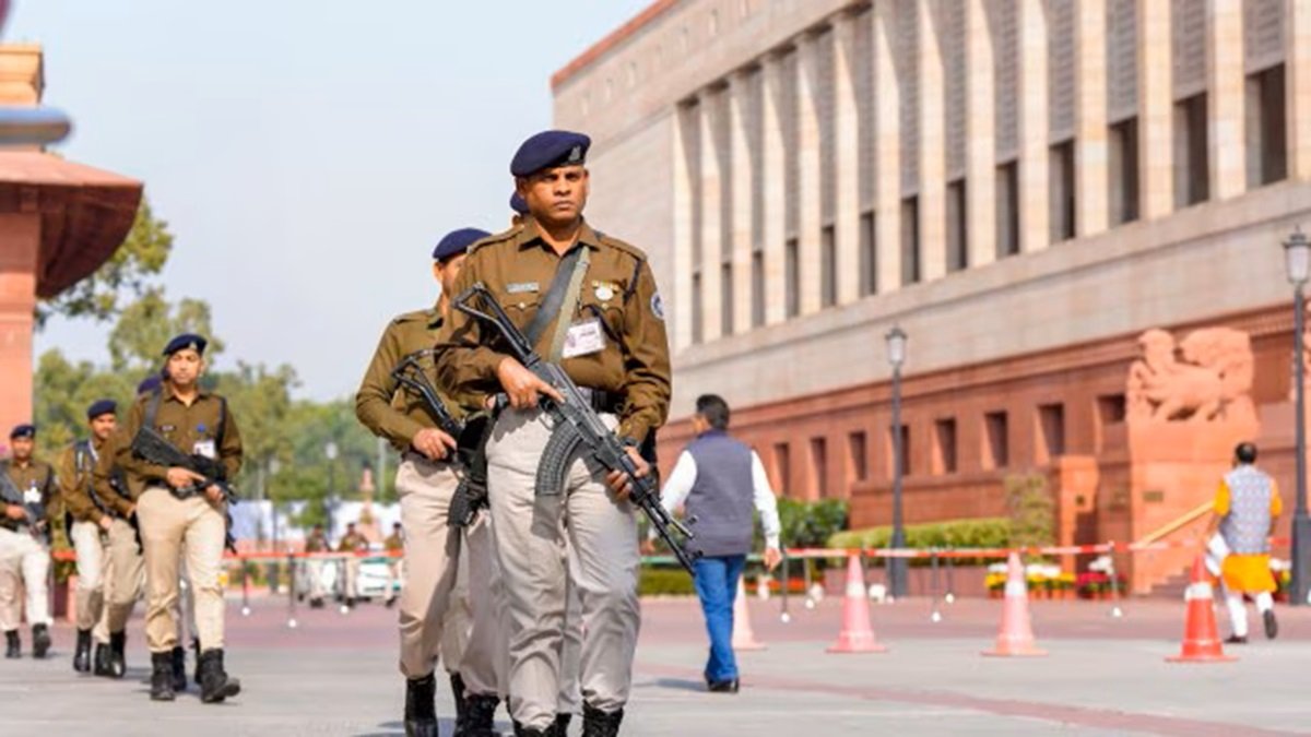 छवि स्रोत: पीटीआई संसद के बाहर सुरक्षाकर्मी तैनात.