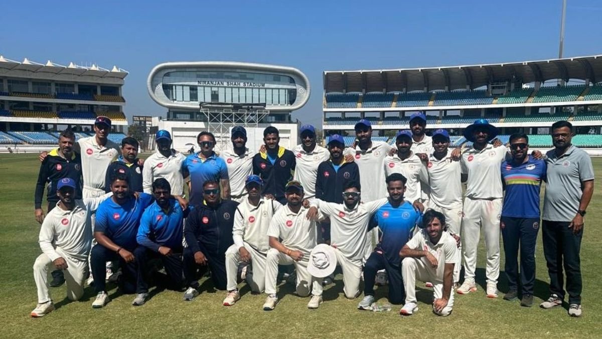 पहले बल्लेबाजी करते हुए, सौराष्ट्र ने एक अच्छी शुरुआत की थी क्योंकि ओपनर चिराग जानी ने 69 रन बनाए थे, लेकिन उन्हें दूसरे छोर से बहुत कम समर्थन मिला। अन्य सलामी बल्लेबाज हार्डिक देसाई ने 22 बनाए, जबकि अनुभवी भारत के बल्लेबाज चेस्टेश्वर पुजारा ने 26 रन बनाए। बॉर्डर-गावस्कर ट्रॉफी के दौरान, टेस्ट स्क्वाड में पुजारा के समावेश की बातें हुईं, लेकिन 37 वर्षीय ने इस बार एक सभ्य अभियान किया, जिसमें सात मैचों में 402 रन बनाए।