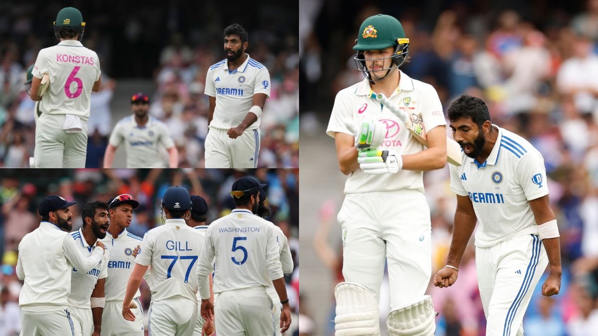 छवि स्रोत: AP/GETTY दोनों के बीच हुई तकरार और उस्मान ख्वाजा के विकेट के बाद सैम कोनस्टास के सामने थे जसप्रित बुमरा