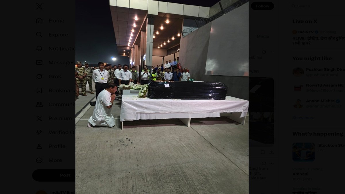 असम के मुख्यमंत्री हिमंत बिस्वा सरमा ने इंदिरा गांधी अंतर्राष्ट्रीय हवाई अड्डे पर शव प्राप्त किया, जो केंद्रीय विदेश मंत्री पबित्रा मार्गेरिटा और वरिष्ठ असम सरकारी अधिकारियों के लिए शामिल हुए। एक भावनात्मक क्षण में, सरमा ने श्रद्धांजलि में घुटने टेक दिए, एक पारंपरिक असमिया गमोसा और एक बोडो अरनई को ताबूत पर रखा।