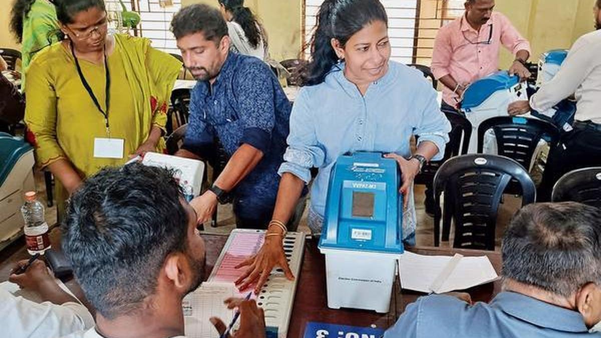विधानसभा चुनाव से पहले कन्नूर में जीवीएचएसएस में मॉक पोलिंग चल रही है। फ़ाइल | फोटो साभार: मोहन एसके