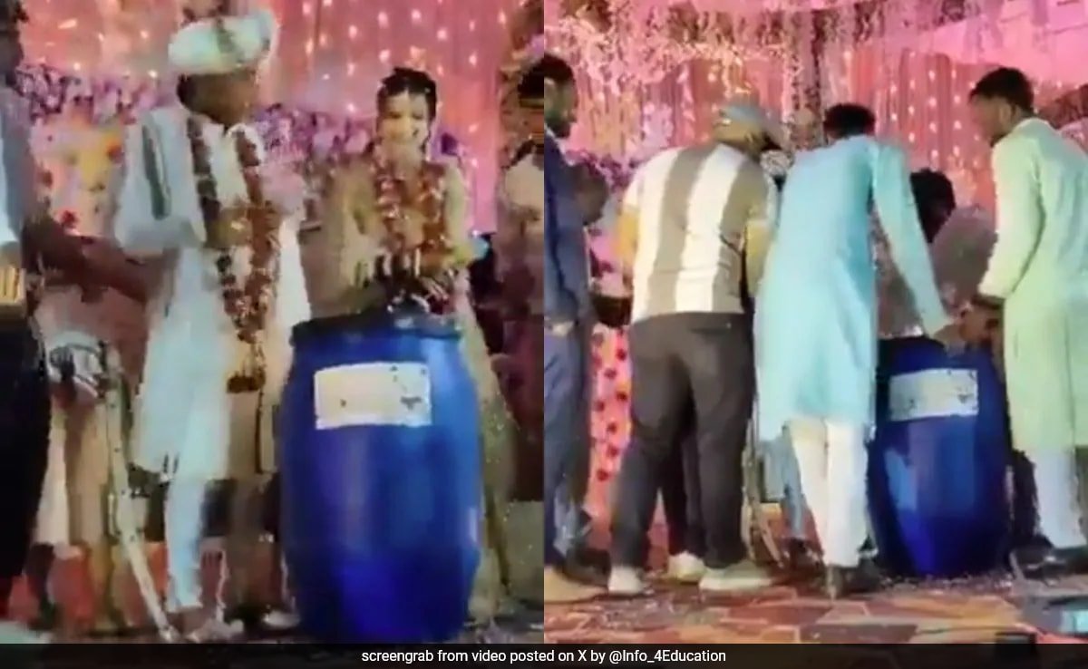 उत्तर प्रदेश के हमीरपुर में एक शादी इंटरनेट की बात बन गई है, जब दूल्हे के पक्ष के मेहमानों के एक समूह ने उन्हें एक बड़े नीले प्लास्टिक ड्रम को उपहार में दिया – मेरठ हत्या के मामले की एक याद दिलाता है जिसमें एक महिला ने अपने पति के शरीर को टुकड़ों में काट दिया और एक समान ड्रम में छिपा दिया।